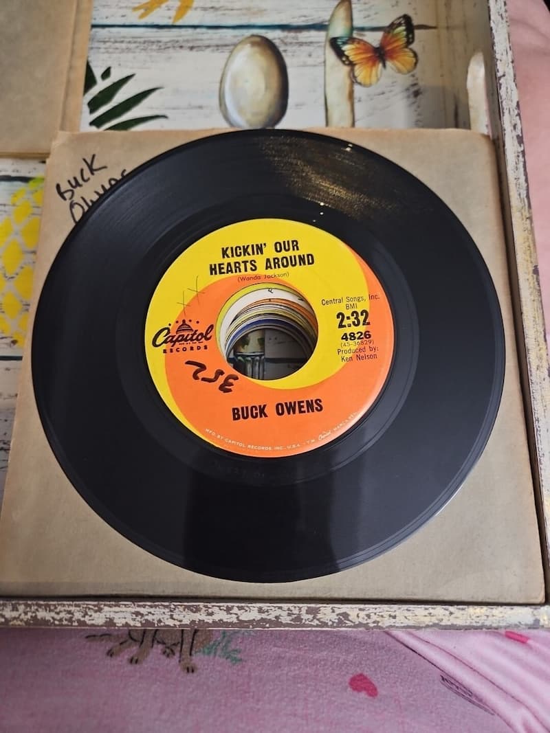“Kickin’ Our Hearts Around” is an early-1960s Buck Owens single written by fellow Capitol artist Wanda Jackson. Session and discography sources indicate that Owens first recorded the song on December 6, 1961 at Capitol Recording Studio, 1750 North Vine Street in Hollywood, with longtime producer Ken Nelson in charge. Issued by Capitol as a 7-inch single in late 1962 (catalogue number 4826), it runs a little under two minutes and forty seconds and belongs to the run of formative Bakersfield records that turned Owens from a regional act into a national country name.