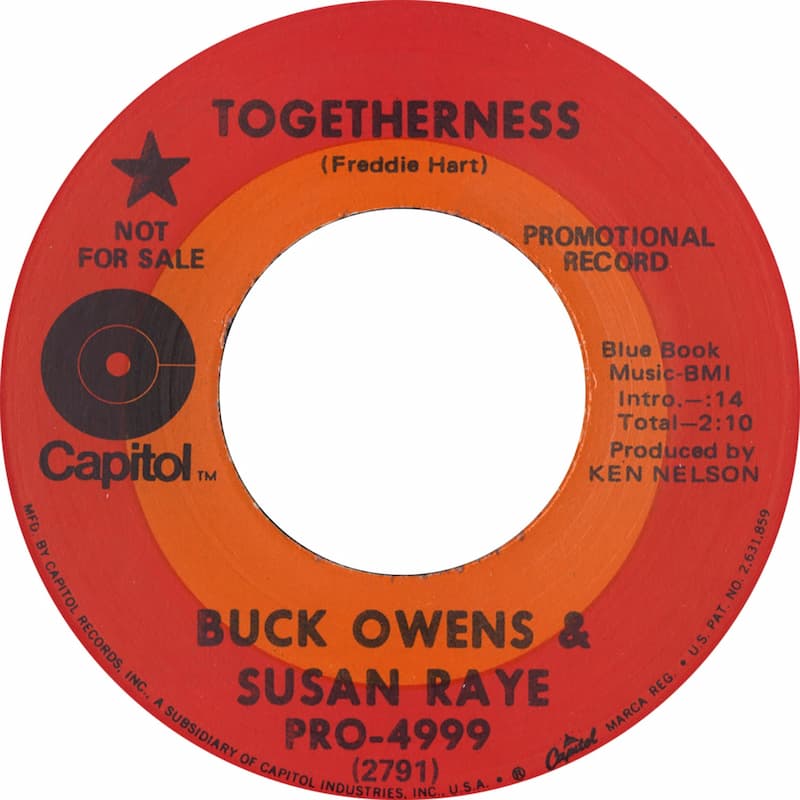 “Togetherness” is a Buck Owens duet from his early-1970s period, recorded as part of his long run of Bakersfield-style releases for Capitol Records. The track is best known in the version he cut with his protégé and duet partner Susan Raye, issued as one of several singles the pair recorded while they were regulars on his television show and touring band. It belongs to the phase in Owens’ career when he was beginning to share the spotlight more often, pairing his established sound with younger voices coming out of Bakersfield.