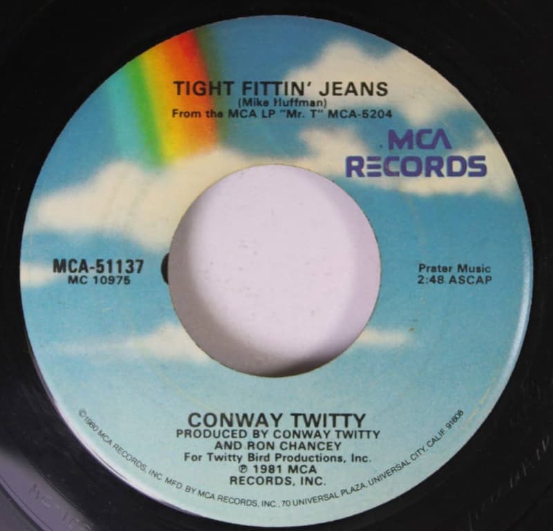 That was contrary to the ploy that Conway usually took, but in this instance, targeting men paid off handsomely. “Tight Fittin’ Jeans” debuted at a modest #71 on July 11, 1981, but by fall, the record took command of Billboard’s top spot in its 12th week on the chart, September 26, 1981. It became Twitty’s 31st of his 40 Billboard number one hits, the second-highest tally in history (behind George Strait’s official & accurate Billboard count of 44).