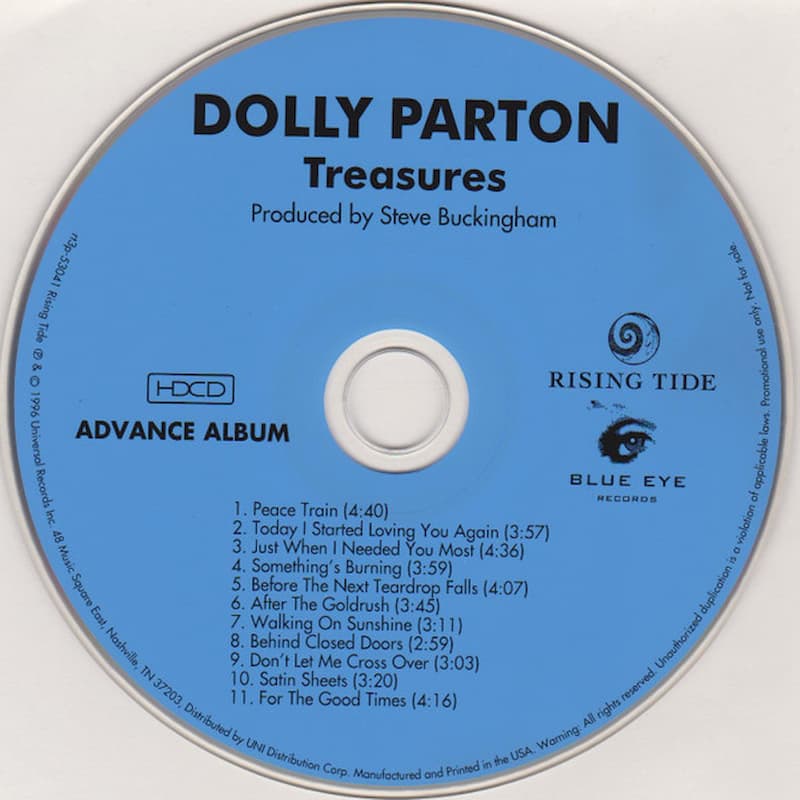 Treasures marked a reflective moment in Parton’s career. By the mid-1990s she had already achieved decades of chart success and film stardom, yet she chose to step back from original material and focus instead on songs that had shaped her musical world. Recorded around June 1996 across studios in Nashville, New York City, and Los Angeles, the project allowed her to collaborate with artists such as Alison Krauss and bring fresh arrangements to familiar titles. Buckingham’s production kept the sound warm and acoustic-leaning, emphasizing vocal interplay over elaborate orchestration.