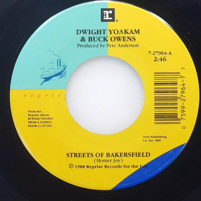 In January, 1988, Owens (along with Merle Haggard) was invited to be part of a Country Music Association 20th anniversary television special saluting the Bakersfield sound. When Haggard bowed out, Owens asked if he could substitute Yoakam and the producers agreed. The CMA requested some sort of song about the town often referred to as “Nashville West.” Buck remembered an old track called “Streets Of Bakersfield” from a 1973 album of his. The song fit the bill perfectly.