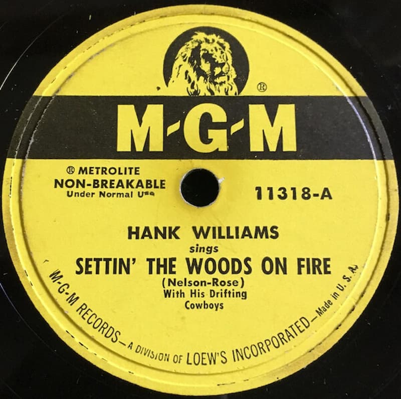 “Settin’ the Woods on Fire” is a 1952 single recorded by Hank Williams with His Drifting Cowboys for MGM Records. Although it closely matches Williams’s own style, the song was actually written by his producer and publisher Fred Rose together with songwriter Ed G. (Edward) Nelson. Williams cut the track at Castle Studio in Nashville on June 13, 1952, and it was released as MGM 11318 in September that year, with “You Win Again” on the B-side. On the U.S. country charts it reached No. 2 on Billboard’s Most Played by Jockeys chart and No. 2 on the National Best Sellers list, giving Williams another major hit in a run of early-1950s successes.