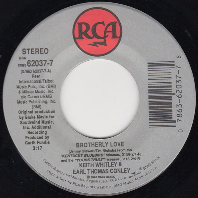 In 1987, Keith Whitley and Earl Thomas Conley recorded a track that made them brothers in a sense. It was the song “Brotherly Love.” However, it was not included on an album until four years later, where it concurrently appeared on Whitley’s first posthumous album Kentucky Bluebird as well as Conley’s album Yours Truly.
