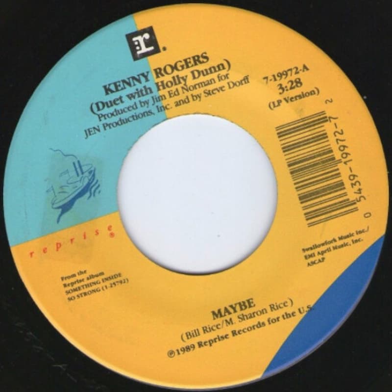 “Maybe” is a country duet recorded by Kenny Rogers with Holly Dunn and released as the fourth single from Rogers’s album Something Inside So Strong. The song was written by Bill Rice and Sharon Vaughn and produced for Reprise Records by Jim Ed Norman. The album was issued in 1989, and “Maybe” was released as a single in February 1990. The recording is credited on the album as a featured duet and was promoted as part of Rogers’s late-1980s body of work that included several guest vocalists.
