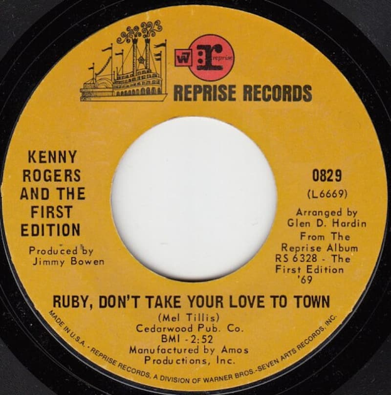 “Ruby, Don’t Take Your Love to Town” is a song written by Mel Tillis that became one of the best-known recordings associated with Kenny Rogers and The First Edition. The composition tells the story of a paralyzed veteran who pleads with his wife, Ruby, not to seek affection elsewhere; its spare, direct lyric and emotionally stark premise made the song an immediate conversation piece when it circulated in the late 1960s. The tune was first recorded by other performers in the mid-1960s, and The First Edition’s dramatic single version, with Kenny Rogers on lead vocal, brought the song its greatest international exposure when released under the band’s name in 1969.
