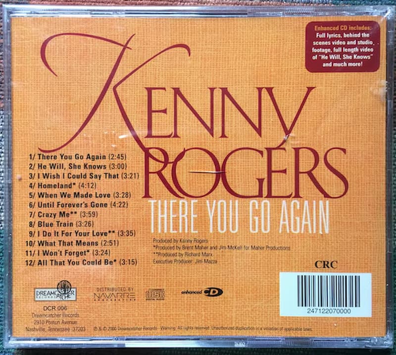 The album There You Go Again was released in 2000 and is considered one of Kenny Rogers’ later studio efforts. It followed She Rides Wild Horses (1999) and was his second release on Dreamcatcher Records. The album contains a mixture of contemporary country material and narrative songs, reflecting Rogers’ preference for storytelling and emotionally grounded lyrics. In addition to the title track, the album includes songs such as “He Will, She Knows,” “Homeland,” and “Beautiful (All That You Could Be).”