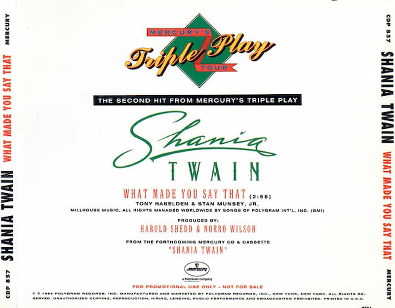 “What Made You Say That” is the debut single by Canadian country music artist Shania Twain. The song was released on March 6, 1993, as the lead single to her eponymous debut album (1993). The song was written by Tony Haselden and Stan Munsey Jr. and produced by Harold Shedd and Norro Wilson, who also produced her album. The song was initially recorded by American country singer and actor Wayne Massey for his third and final studio album Wayne Massey and Black Hawk (1989).