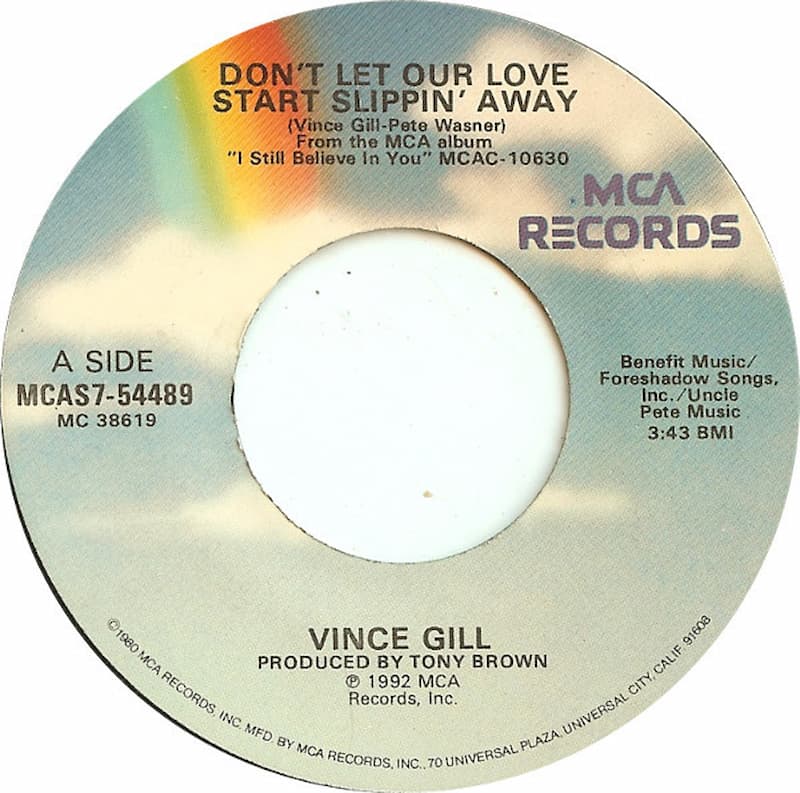 “Don’t Let Our Love Start Slippin’ Away” stayed at No. 1 for two weeks. Gill scored two more No. 1 hits from his I Still Believe in You album, “One More Last Chance” and “Tryin’ to Get Over You.”