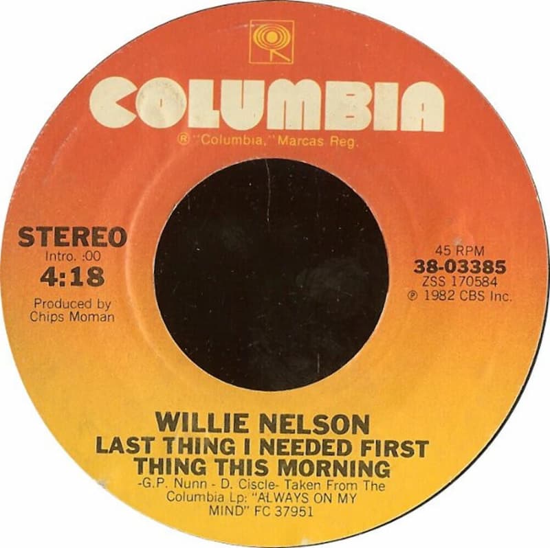 “The Last Thing I Needed First Thing This Morning” is a song performed by Willie Nelson, released in 1982 as a single from his album Always on My Mind on Columbia Records. Written by Gary P. Nunn, Don Wayne, and Donna Farar, the song was originally recorded by John Anderson, reaching No. 3 on the Billboard Hot Country Singles chart in 1981. Nelson’s version peaked at No. 1 on the same chart on March 6, 1982, and charted for 16 weeks. The 4:22 track laments a series of misfortunes starting with a troubled love affair, with lyrics like: “The last thing I needed first thing this morning / Was to have you walk out on me.”